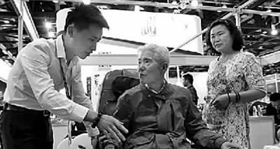 第七屆中國國際養(yǎng)老服務業(yè)博覽會現(xiàn)場,一款理療設備吸引了老年觀眾的關注。新華社發(fā)