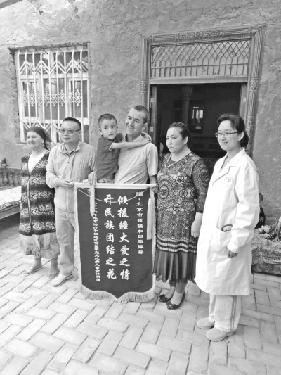 圖為北京援疆醫生登門看望和田縣布扎克鄉先心病兒童赴京救治后康復情況,收到當地維吾爾族群眾送上的錦旗。本報記者余向東文/圖