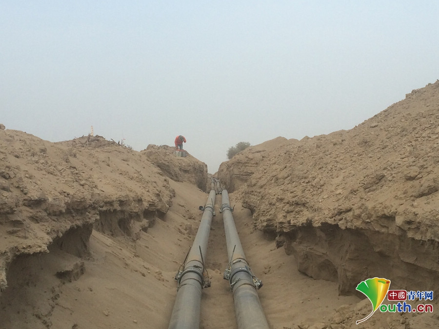 施工班組在沙漠工地施工。本人供圖
