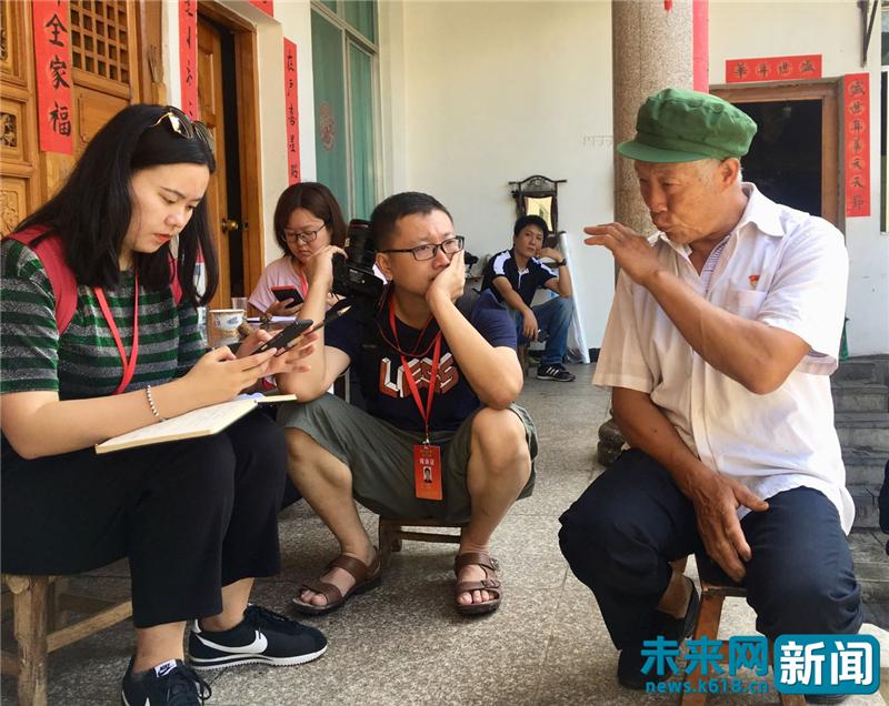 尹相明(右)在向記者介紹崇仁村這些年的發(fā)展變化。未來網(wǎng)記者 程婷 攝
