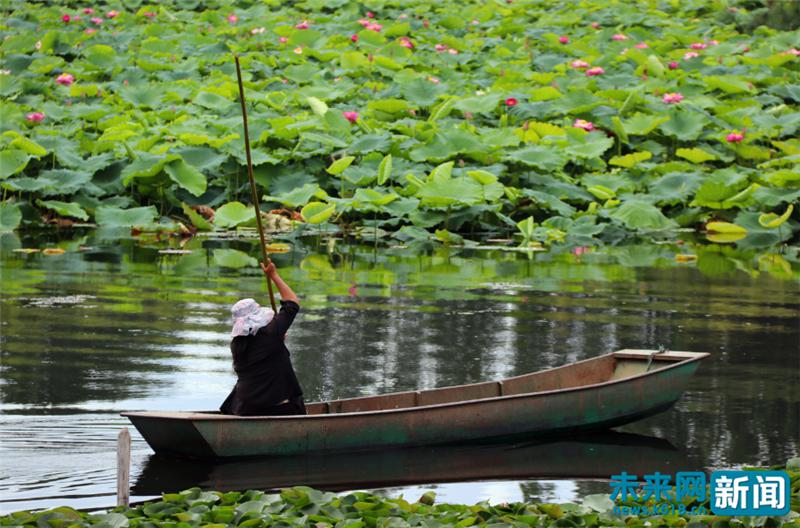 洱源水質(zhì)大為改善的茈碧湖,碧波蕩漾,荷葉田田。未來網(wǎng)記者 程婷 攝