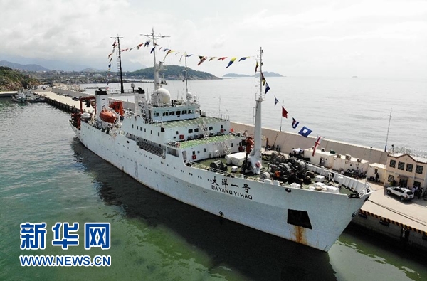 7月31日,在位于山東省青島市的國家海洋局北海分局科考基地碼頭,“大洋一號”科考船準備起航。新華社記者 李紫恒 攝