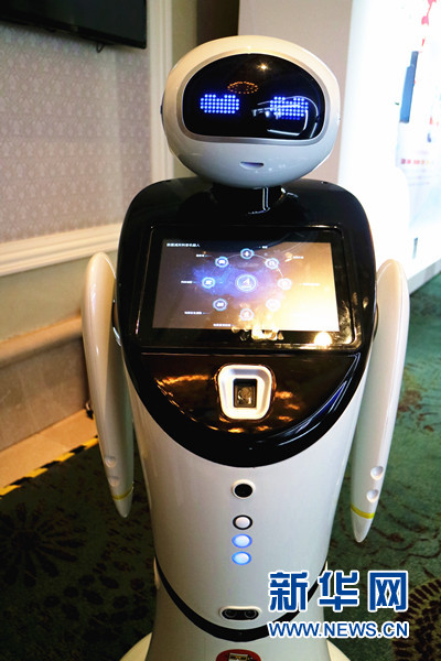 圖為地震科普展覽上的智能機器人。新華網(wǎng)汪亞/攝