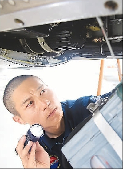 圖為鄭磊在艦上訓(xùn)練。 謝 力攝