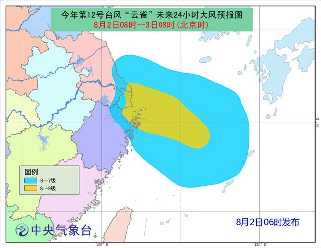大風預報:8月2日08時至8月3日08時,東海大部、黃海西南部將有6-7級大風,“云雀”中心經過的東海北部的部分海域、舟山群島、杭州灣、上海沿海、長江口區、江蘇東南部沿海將有8-9級大風,陣風可達10-11級。