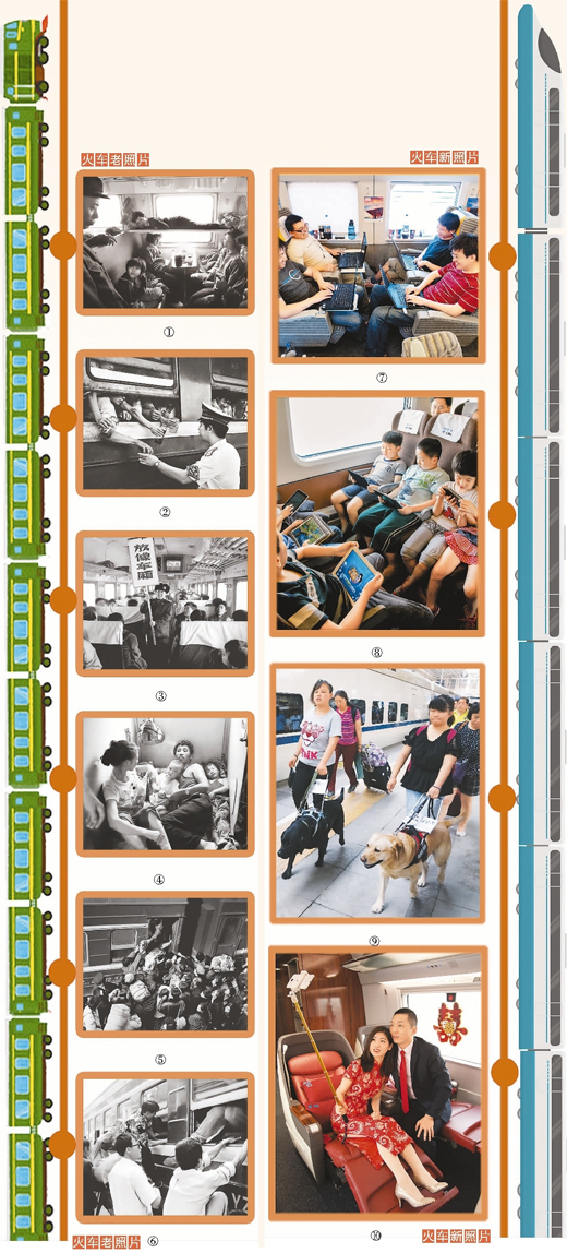從綠皮車到紅皮車,從藍皮車到白皮車,再從“和諧號”到“復興號”,火車與鐵路一直在變,火車上的中國人亦步履不停。時代更迭,而跨越時空保持不變的,是由火車承載著的奔向偉大目標的旺盛活力。看,那出發的信號燈再次亮起,人們與祖國永遠行駛在奮進的道路之上?。▏?冰 袁苗苗 高明靜)
