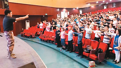 2018“平安留學(xué)”行前培訓(xùn)在貴州、成都等地舉行。圖為西南交通大學(xué)培訓(xùn)會(huì)現(xiàn)場(chǎng),學(xué)生和教官在進(jìn)行互動(dòng)。出國(guó)留學(xué)行前培訓(xùn)微信公眾號(hào)供圖