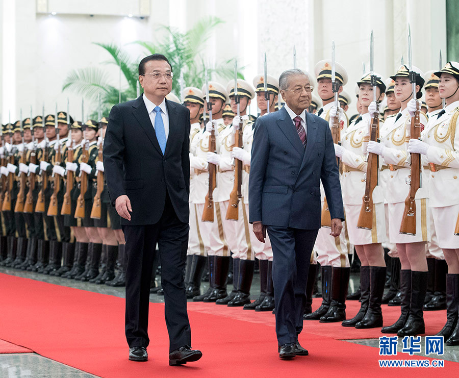 新華社北京8月20日電(記者孫奕)國務院總理李克強20日上午在人民大會堂同來華進行正式訪問的馬來西亞總理馬哈蒂爾舉行會談。