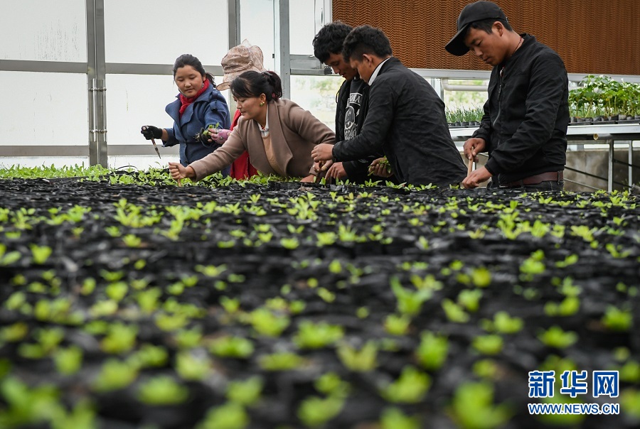 西藏山南市扎囊縣阿扎鄉(xiāng)群眾在藏草萬畝苗圃基地內(nèi)栽培幼苗(7月23日攝)。 新華社記者劉東君攝