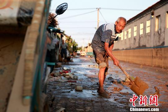 8月24日,洪水退去后濰坊壽光政府組織人員清理街道。濰坊市已啟動《重大自然災害衛生應急預案》最高級別響應。據統計,濰坊市已修復縣鄉路路基、路面79.14公里,局部損毀橋涵11座;搶通縣鄉公路22條、143公里。 梁犇 攝