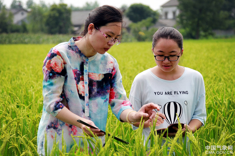 7月18日以來,湖北省宜昌市水稻主產區連續10天出現35℃以上高溫天氣。為做好高溫干旱天氣水稻生長氣象服務,宜昌市氣象局農氣服務人員深入枝江市問安鎮仙女村和關廟山村等地,實地調查當前水稻生長狀況并向稻農了解氣象服務需求。孟芳/文 高姝麗/圖