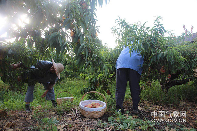 7月20日,為應對臺風“安比”,上海市金山區農業部門組織農戶搶收蟠桃和葡萄。顧秀龍 供圖