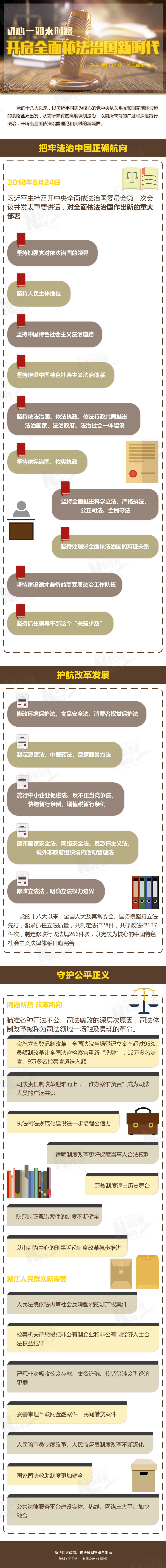 明確全面依法治國的指導思想、發(fā)展道路、工作布局、重點任務,深刻回答中國特色社會主義法治建設向哪里走、跟誰走、走什么路、實現(xiàn)什么目標、如何實現(xiàn)目標等一系列重大問題……不斷創(chuàng)新發(fā)展的中國特色社會主義法治理論,為全面依法治國提供根本遵循。