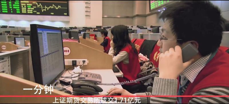 一分鐘,上證期貨交易所成交1.71億元,全年成交約89.93萬億元。