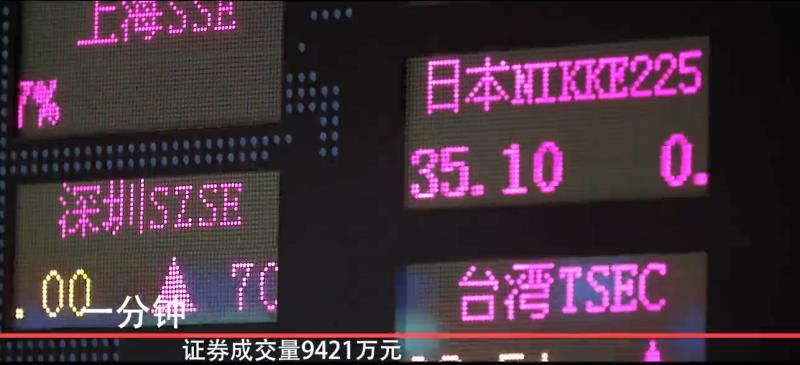 一分鐘,上海證券交易所成交9421萬元,全年成交約49.52萬億元。