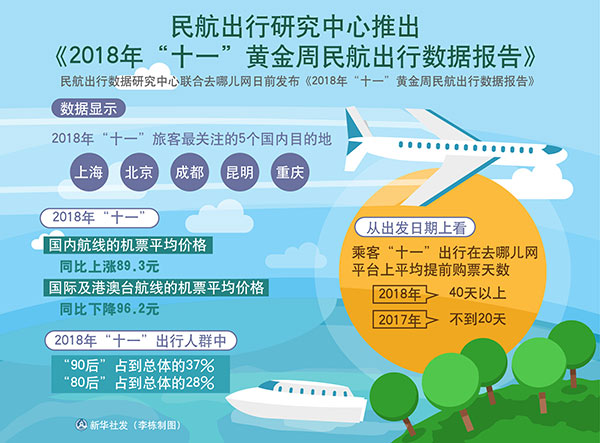 圖表:民航出行研究中心推出《2018年“十一”黃金周民航出行數據報告》 新華社發 李棟 制圖