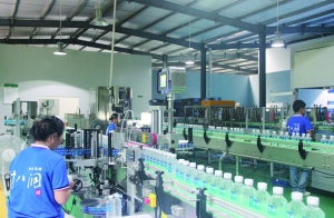 一棟碧綠色的廠房首先映入記者眼簾。走進廠房,十幾名工人正在全自動化的生產線前忙碌著。來自十八洞村的山泉水經過水管輸送到這兒,經過十幾道設備,進行專業沉淀、過濾、消毒、殺菌等處理后,一瓶瓶帶著山里冰涼氣息的礦泉水就在這里下線。