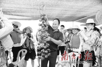 陽江陽西縣程村鎮紅光村村干部介紹生蠔養殖。張國勤 攝