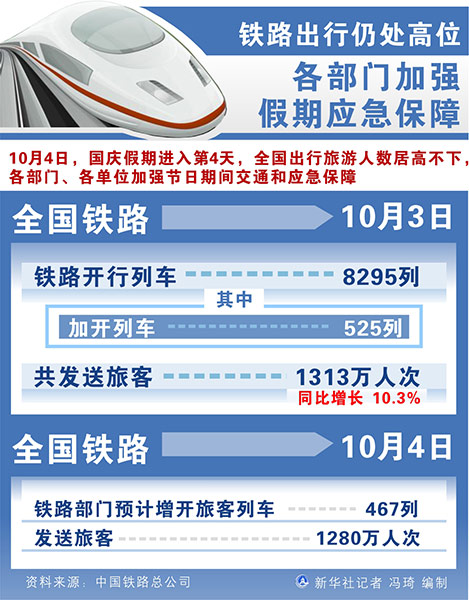 新華社北京10月4日電(記者樊曦、葉昊鳴)國慶假期進(jìn)入第4天,全國出行旅游人數(shù)居高不下,各部門、各單位加強(qiáng)節(jié)日期間交通和應(yīng)急保障。