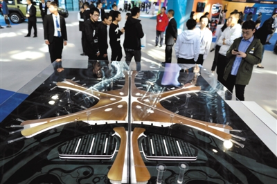 昨日,“雙創(chuàng)周”北京會場,現(xiàn)場展示大興國際機場模型。新京報記者 浦峰 攝