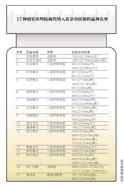 本月15日17種國家談判抗癌藥全納入北京醫保報銷范圍