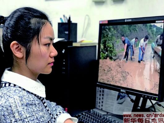 王若辰正在編輯同事田朝暉的扶貧故事。王若辰(新華每日電訊)