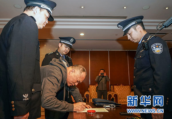 11月14日,在北京首都機場,紅通逃犯鄭泉官被從美國強制遣返。 新華社記者 殷剛 攝