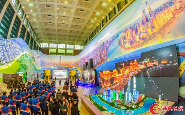 圖說:上海展區的視頻和沙盤展示著建設成就。新民晚報記者 孫中欽 攝