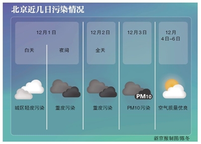 另外,記者了解到,昨日下午,北京市教委發布《關于啟動空氣重污染應急黃色預警指令的通知》。通知要求,中小學、幼兒園、少年宮及校外教育機構停止體育課、課間操、運動會、體育考試等一切戶外活動。黃色預警措施自12月1日0時起實施。(記者 鄧琦)