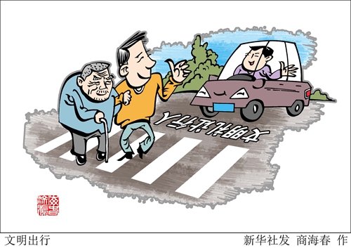 漫畫:文明出行 新華社發(fā) 商海春 作