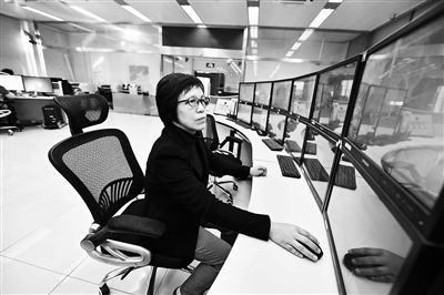 ▲北京市氣象臺首席預(yù)報(bào)員郭金蘭正在氣象會商室查看氣象數(shù)據(jù)