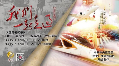 作為對40年來中國經濟社會發展成就進行全景式呈現的大型電視紀錄片,《我們一起走過——致敬改革開放40周年》展現了107個典型的改革故事,攝制組采訪了183位改革的親歷者、參與者、見證者,還挖掘了大量歷史素材,用40年來的時代歌曲、影視作品串起一段段改革歲月,旨在激起觀眾的共同記憶。