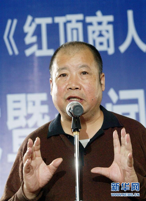 二月河在浙江杭州舉行的電視劇《紅頂商人胡雪巖》開機(jī)儀式上講話(2004年10月18日攝)。新華社發(fā)