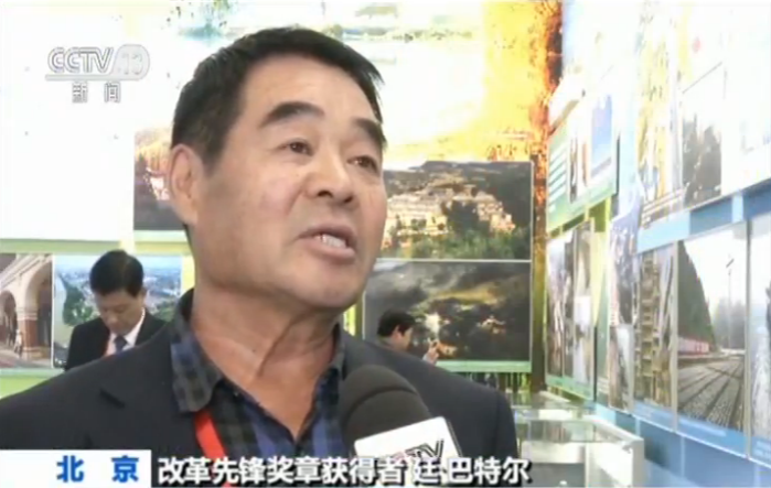 改革先鋒獎章獲得者 廷·巴特爾:我們國家這40年,黨中央指引的路子很正確。習總書記講,綠水青山就是金山銀山,在十八大以后,近幾年在治理草原生態,恢復草場,讓牧民收入逐漸增收,現在我們一個村整體脫貧了。