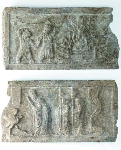 2014年起,考古隊(duì)對(duì)位于遼寧省北鎮(zhèn)市的新立遼代建筑遺址、琉璃寺遺址進(jìn)行了考古發(fā)掘。在新立遺址,發(fā)現(xiàn)了一組較完整的遼代四合院式建筑基址。考古領(lǐng)隊(duì)萬(wàn)雄飛介紹,出土遺物的瓦件絕大多數(shù)為綠色琉璃,“證明該四合院建筑為一座滿鋪綠琉璃瓦的高等級(jí)建筑。正殿周圍還出土了大量鋪地花斑石殘塊,這種高級(jí)石材一般僅用于皇家宮殿和陵寢建筑。”正殿之上還出土了一些玉冊(cè)殘塊,有契丹小字和漢字兩套。遺址東側(cè)的坡地上出土了一件具有皇家氣派的大型石螭首。通過(guò)與遼慶陵的比較,并結(jié)合史料綜合分析,專家認(rèn)為這里就是遼代乾陵的陵前祭殿。