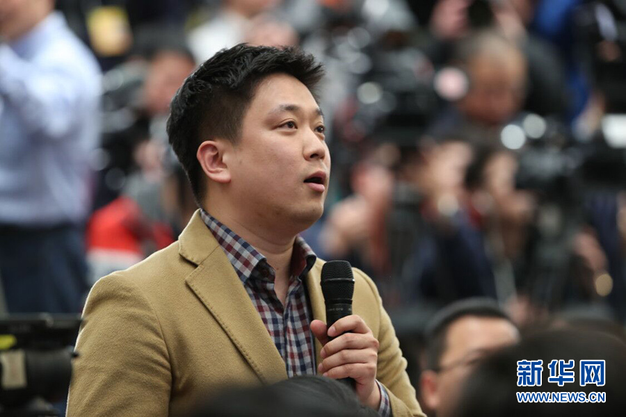 3月4日,十三屆全國人大一次會議在人民大會堂新聞發布廳舉行新聞發布會,由大會發言人張業遂就大會議程和人大工作相關的問題回答中外記者的提問。圖為韓聯社記者提問。新華網/中國政府網 陳杰 攝