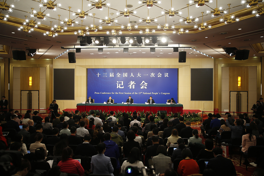 十三屆全國人大一次會議新聞中心3月6日上午10時在梅地亞中心多功能廳舉行記者會,邀請國家發展和改革委員會主任何立峰、副主任張勇、副主任寧吉喆就“創新和完善宏觀調控,推動高質量發展”相關問題回答中外記者提問。圖為記者會現場。 新華網/中國政府網 陳杰 攝