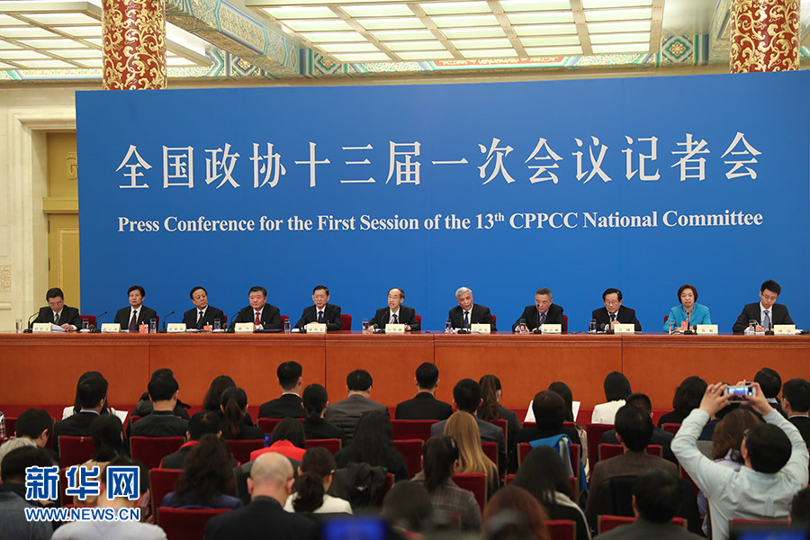 民主黨派中央和全國(guó)工商聯(lián)領(lǐng)導(dǎo)人記者會(huì)3月6日下午在人民大會(huì)堂金色大廳舉行,邀請(qǐng)民革中央主席萬(wàn)鄂湘、民盟中央主席丁仲禮、民建中央主席郝明金、民進(jìn)中央主席蔡達(dá)峰、農(nóng)工黨中央主席陳竺、致公黨中央主席萬(wàn)鋼、九三學(xué)社中央主席武維華、臺(tái)盟中央主席蘇輝、全國(guó)工商聯(lián)主席高云龍回答記者提問(wèn)。圖為記者會(huì)現(xiàn)場(chǎng)。新華網(wǎng)/中國(guó)政府網(wǎng) 陳杰 攝