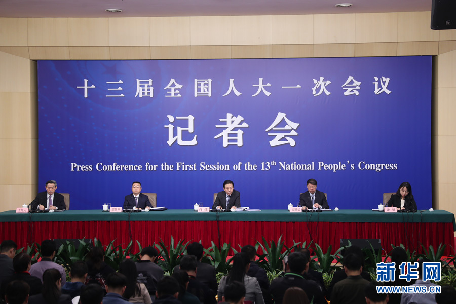十三屆全國人大一次會議新聞中心于3月7日上午在梅地亞中心多功能廳舉行記者會,邀請財政部部長肖捷,副部長史耀斌、胡靜林就“財稅改革和財政工作”相關(guān)問題回答中外記者提問。圖為肖捷(中)回答記者提問。新華網(wǎng)/中國政府網(wǎng) 翟子赫 攝