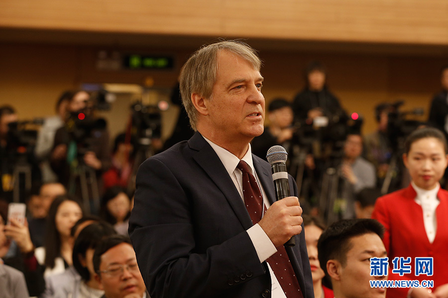 十三屆全國人大一次會議新聞中心3月9日在梅地亞中心多功能廳舉行記者會,邀請中國人民銀行行長周小川,副行長易綱,副行長、國家外匯管理局局長潘功勝就“金融改革與發展”相關問題回答中外記者提問。圖為彭博社記者提問。新華網/中國政府網?王健 攝