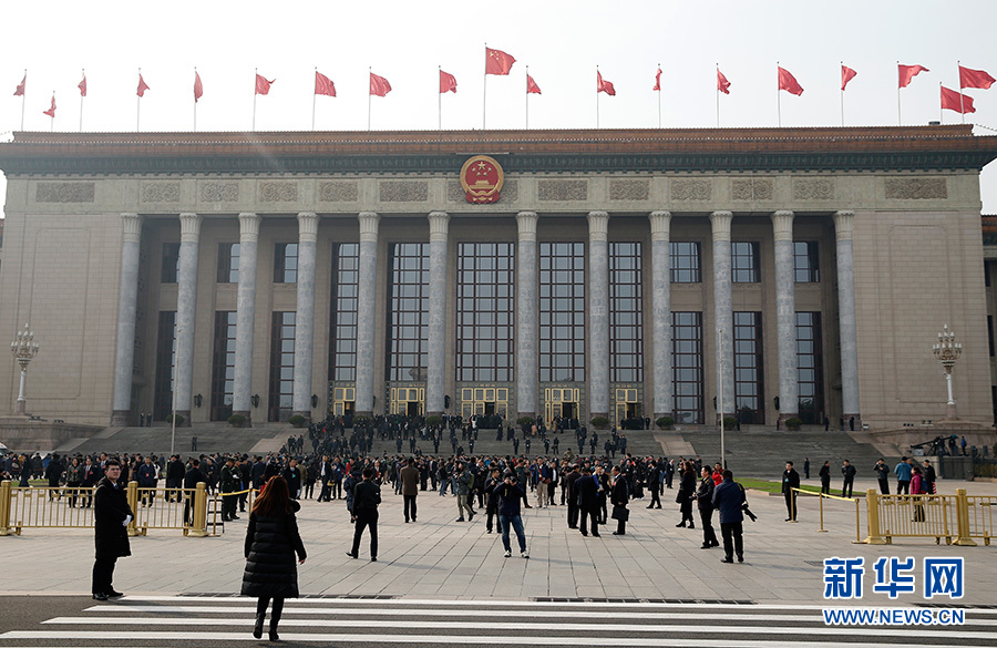 ??? 十三屆全國人大一次會議9日下午3時在人民大會堂舉行第二次全體會議,聽取最高人民法院院長周強關于最高人民法院工作的報告,聽取最高人民檢察院檢察長曹建明關于最高人民檢察院工作的報告。圖為人民大會堂外景。新華網/中國政府網 陳杰 攝