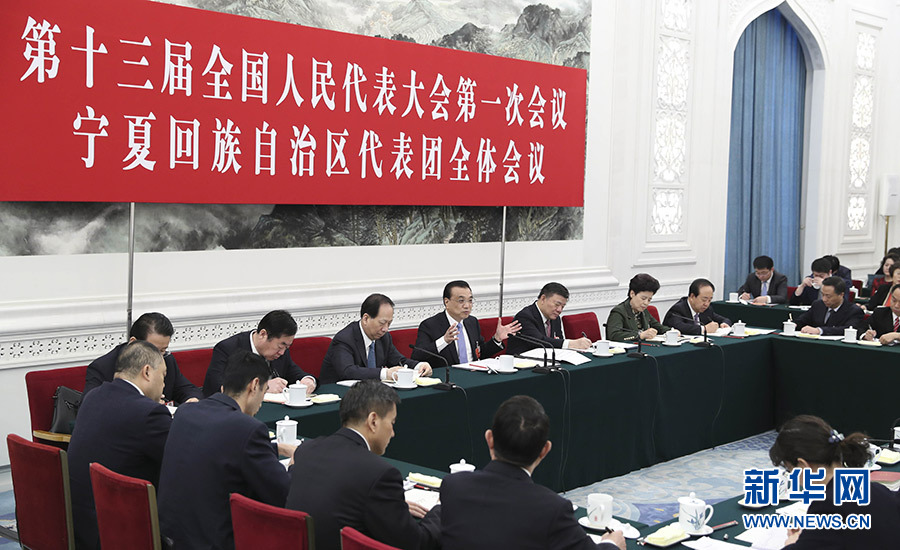 3月10日,中共中央政治局常委、國務(wù)院總理李克強(qiáng)參加十三屆全國人大一次會議寧夏代表團(tuán)的審議。 新華社記者 丁林 攝