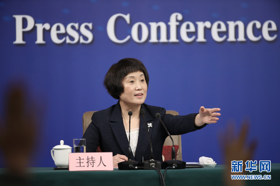 十三屆全國人大一次會議新聞中心3月10日15時在梅地亞中心多功能廳舉行記者會,邀請國務院國資委主任肖亞慶,副秘書長、新聞發言人彭華崗就“國有企業改革發展”相關問題回答中外記者提問。圖為記者會主持人。新華網/中國政府網 翟子赫 攝