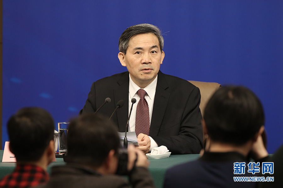 十三屆全國人大一次會(huì)議新聞中心3月11日10時(shí)在梅地亞中心多功能廳舉行記者會(huì),邀請商務(wù)部部長鐘山、副部長兼國際貿(mào)易談判副代表王受文、副部長錢克明就“推動(dòng)形成全面開放新格局 推動(dòng)商務(wù)事業(yè)高質(zhì)量發(fā)展”相關(guān)問題回答中外記者提問。圖為主持人何紹仁。新華網(wǎng)/中國政府網(wǎng) 陳杰 攝?