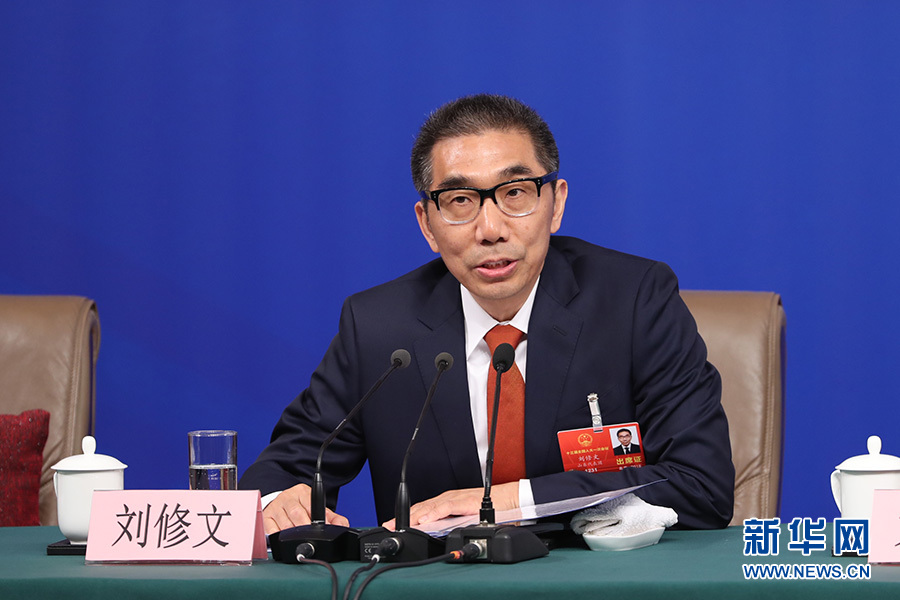 十三屆全國人大一次會議新聞中心于3月12日15時(shí)在梅地亞中心多功能廳舉行記者會,邀請十二屆全國人大財(cái)經(jīng)委副主任委員尹中卿、教科文衛(wèi)委副主任委員吳恒、環(huán)資委副主任委員袁駟、內(nèi)司委委員鄭功成,全國人大常委會預(yù)算工委副主任劉修文、常委會辦公廳秘書局巡視員傅文杰就“人大監(jiān)督工作”相關(guān)問題回答中外記者提問。圖為全國人大常委會預(yù)算工委副主任劉修文回答記者提問。新華網(wǎng)/中國政府網(wǎng) 陳杰 攝