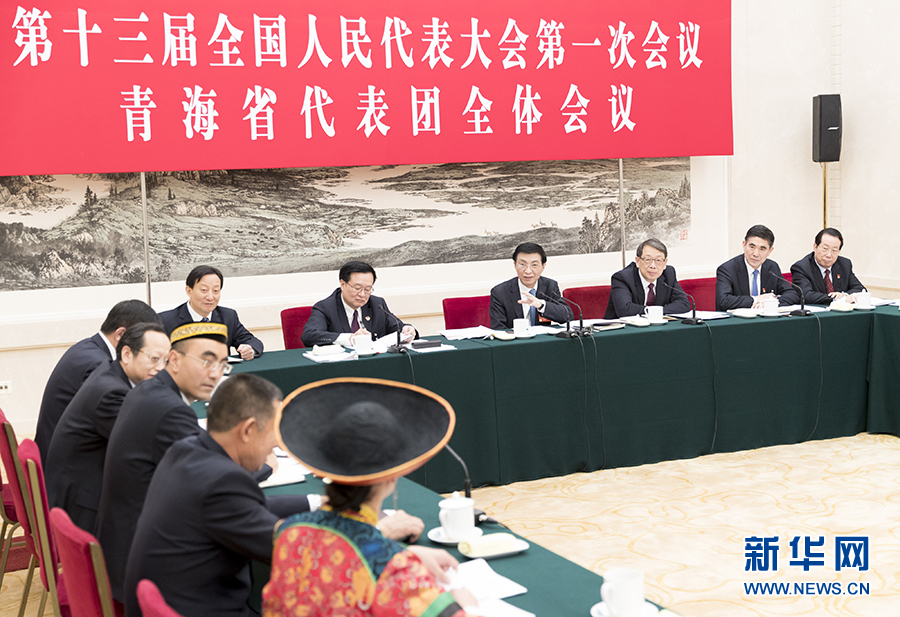 王滬寧在青海代表團參加審議。在聽取王國生、王建軍、張曉容等代表發言后,王滬寧表示,完全贊成張德江委員長所作的全國人大常委會工作報告。希望青海深入學習貫徹習近平新時代中國特色社會主義思想和黨的十九大精神,在學懂弄通做實上下功夫,引導干部群眾增強“四個意識”,堅決維護習近平總書記核心地位、維護黨中央權威和集中統一領導。要聚焦實現高質量發展,加快傳統產業優化升級,大力發展特色新興產業,打好生態保護、綠色發展兩張牌,打造青海發展新的增長點。要提高保障和改善民生水平,打好精準脫貧攻堅戰,做好民族團結進步工作,增強各族群眾的獲得感、幸福感、安全感。要認真貫徹新時代黨的建設總要求,全面加強黨的領導和黨的建設。