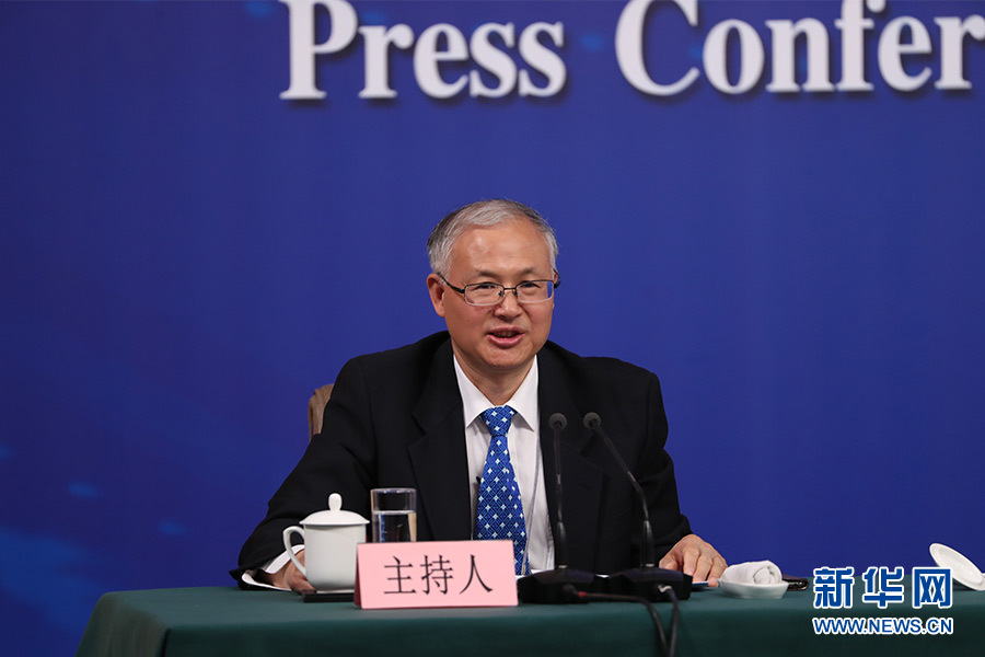 3月12日,十三屆全國人大一次會議新聞中心在梅地亞中心多功能廳舉行記者會,邀請十二屆全國人大內司委副主任委員王勝明、財經委副主任委員烏日圖、教科文衛委副主任委員吳恒、環資委委員呂彩霞,全國人大常委會法工委副主任王超英、副主任許安標就“人大立法工作”相關問題回答中外記者提問。圖為記者會主持人。新華網/中國政府網 翟子赫 攝