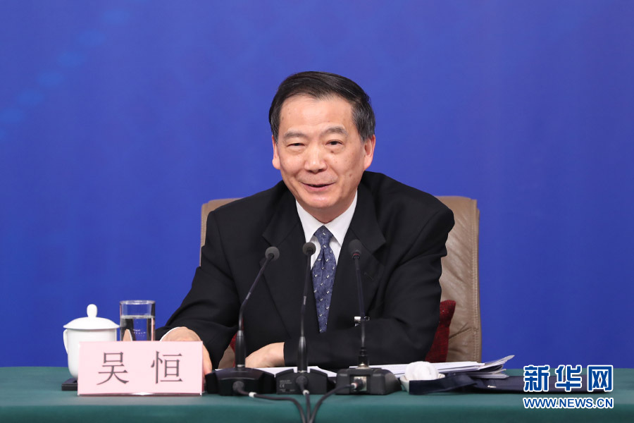 十三屆全國人大一次會議新聞中心于3月12日15時在梅地亞中心多功能廳舉行記者會,邀請十二屆全國人大財經委副主任委員尹中卿、教科文衛委副主任委員吳恒、環資委副主任委員袁駟、內司委委員鄭功成,全國人大常委會預算工委副主任劉修文、常委會辦公廳秘書局巡視員傅文杰就“人大監督工作”相關問題回答中外記者提問。圖為教科文衛委副主任委員吳恒回答記者提問。新華網/中國政府網 陳杰 攝
