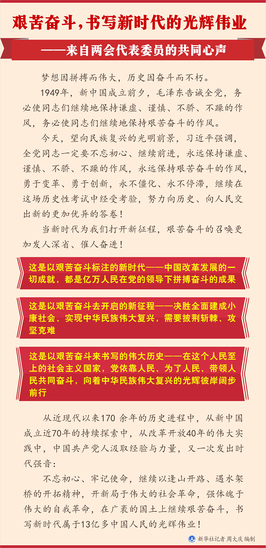 圖表:艱苦奮斗,書寫新時代的光輝偉業(yè)——來自兩會代表委員的共同心聲 新華社記者 周大慶 編制