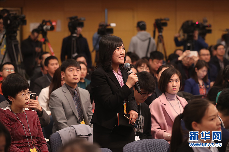 十三屆全國人大一次會議新聞中心3月17日(星期六)15時在梅地亞中心多功能廳舉行記者會,邀請環保部部長李干杰就“打好污染防治攻堅戰”相關問題回答中外記者提問。圖為中央人民廣播電臺、央廣網記者提問。新華網/中國政府網 曲植 攝